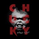 Chucky is looking at you. His angelic face, babyish complexion... he just wants to play! Won't you play with him? Printed in greyscale and blood red, this face-on portrait of the serial killer doll is definitely talking to no-one else but you.