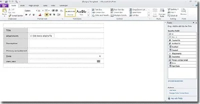 • Design faster with the Ribbon interface. Instead of traditional menus and toolbars that might require several steps to complete a task, the Ribbon displays commands in a tab structure, organized by tasks that are related to a certain activity, so you can create the forms you want faster.