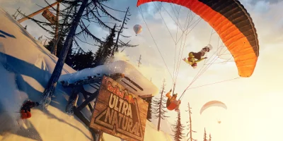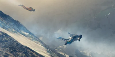 - Choose between four unique ways to traverse the mountain: ski, wingsuit, snowboard, or paraglide.