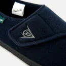 Men's low top slippers from Dunlop. The 'Arthur' slippers comprise a soft, comfortable design with a Velcro side fastening for easy access. Set on a durable sole that offers grip and durability. Complete with a branded tag, an embroidered Dunlop logo and tonal stitching throughout.