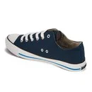 Men’s ‘Halfpipe’ navy pumps with a synthetic upper from Crosshatch. Set on a durable white rubber sole, the plimsoll trainers feature a lace-up fastening with metal eyelets, a contrasting blue stripe on the midsole and a branded licence plate to the heel. Complete with printed Crosshatch branding to the side. – L.R.