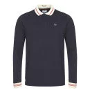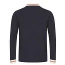 The Harrison polo shirt by Weekend Offender is a navy blue, pure cotton option that is both simple and stylish. Boasting an off white and red collar with matching trims on the cuffs, this long sleeved fit polo shirt boasts two buttons on the placket and subtle embroidered logo detail to the chest. - E.D