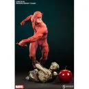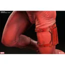 The sleek and muscular hero is disguised in his fantastically sculpted iconic red costume with raised 'DD' logo and fabric details, wearing an expression of intense concentration under his distinctive horned mask. Skilled in combat and armed with his signature billy club weapon, Daredevil will do whatever it takes to protect and defend the innocent. The Daredevil Premium Format Figure is an outstanding addition to any collection, perfect for any Marvel display.