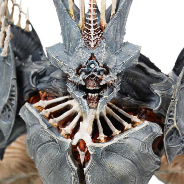- Base comes with intricate details including giant Hive wings, teeth details, piercing blue eyes and acolyte soldier