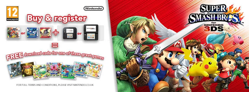 Register a copy of Super Smash Bros. for Nintendo 3DS* (releasing 3rd October), Pokémon Omega Ruby** or Pokémon Alpha Sapphire** (both releasing 28th November) with Club Nintendo between 3rd October 2014 and 12th January 2015 (23: 59 local time), and fill out the software registration survey – a required action if the copy of the game is purchased at retail.