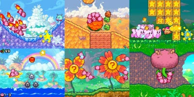 • Players can control each Kirby character in a variety of ways using a stylus on the touch screen. For example, a Kirby character can be launched into the air with a flick of the stylus, or players can make a swarm of Kirby characters dash to a given point by tapping on that spot on the touch screen multiple times.