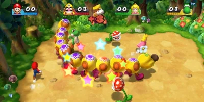 Mario Party 9 has been completely revamped and revolutionised to provide the most exciting gameplay yet, with seven playable boards and 80 minigames. Up to four players can play at one time, and Mario Party 9 has introduced a brand new way to travel round the boards in style: vehicles! From a swish car in Toad Road, to much wackier transport including a legged machine in Bob-omb Factory, and even a magic carpet in Boo's Horror Castle. Due to the vehicles, players take it turns to be the vehicle Captain, with each stage they play having unique Captain Events, introducing yet another opportunity for the tables to turn on whoever is in the lead. Each stage also ends with a fearsome Boss Battle, allowing co-operative play to conquer all as you all must work as a team to defeat the Boss; classic characters such as Bowser and King Boo make a terriffying appearance. Each stage also has multiple paths to work your way through to the end of the board, meaning that no two games you play will ever be the same.