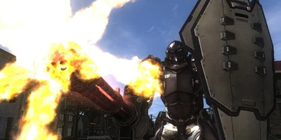 • Utilise hundreds of different weapons, gadgets, and vehicles, from rifles and grenades, to giant mecha with rocket-powered fists!