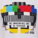 Retro inspired t-shirt from Joystick Junkies, featuring a TV themed logo on the front, with the text 'The invasion will not be televised'.