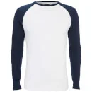 Men's two pack of long sleeve T-shirts from Smith & Jones. Cut from stretch cotton with contrast, raglan sleeves, the 'Hurtz' tops have been constructed with simple crew necks and long sleeves. Colours include white with navy sleeves, and grey marl with black sleeves.