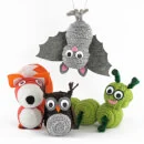Inside you'll find; 5 colours of wool, spool knit tool, 8 polystyrene base shapes, yarn needle, 4 pairs of google eyes, 7 felt squares, 3 pipe cleaners, glue pen and instruction book.